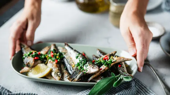 رغم صغر حجمه، يُعد السردين مصدرًا جيدًا لفيتامين D، إذ توفّر حبتان منه نحو 1.2 ميكروغرام. ويتميّز بسهولة إضافته إلى الوجبات، فضلًا عن احتوائه على الكالسيوم وأوميغا-3 والبروتين.
